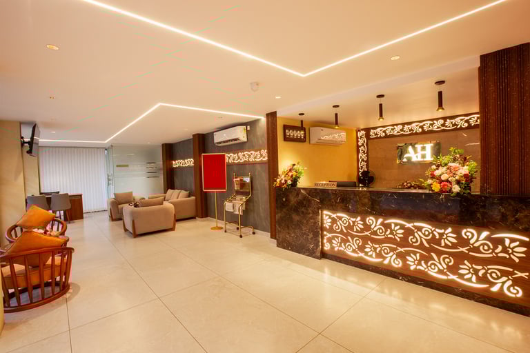 Nestled amidst the scenic charm of Balussery, Amity Heights invites you to experience refined hospitality where modern luxury meets the serene beauty of nature. Situated surrounded by lush greenery, the hotel offers a tranquil escape for travelers seeking comfort, elegance, and heartfelt service. Whether you are here for leisure or business, Amity Heights promises a stay that feels both rejuvenating and memorable.Step into our grand lobby and be greeted by a sense of calm and class.