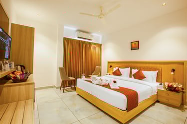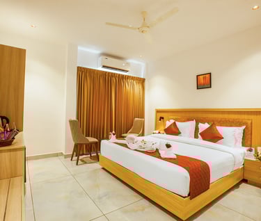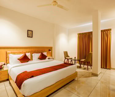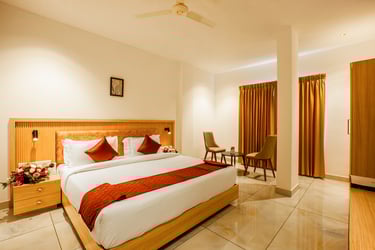 Our Standard Rooms are thoughtfully designed to offer a cozy and refreshing stay for both solo travelers and couples. Available in Single and Double Occupancy, these rooms feature soothing interiors, soft lighting, and neatly arranged furnishings that create an inviting sense of calm. Perfect for guests seeking a peaceful and budget-friendly retreat without compromising on comfort or style.